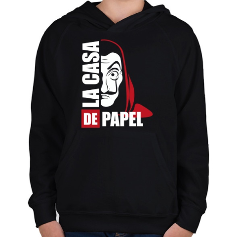 1 kép PRINTFASHION La casa de papel N - Gyerek kapucnis pulóver - Fekete