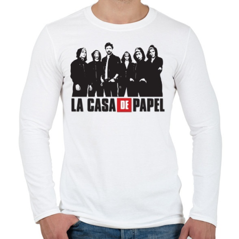 1 kép PRINTFASHION La casa de papel - nagy pénzrablás art - Férfi hosszú ujjú póló - Fehér