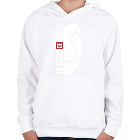 1 kép PRINTFASHION La casa de papel - sötét alaphoz - Gyerek kapucnis pulóver - Fehér