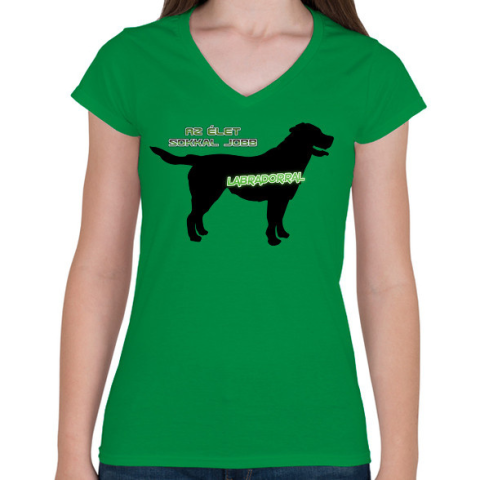 1 kép PRINTFASHION Labrador - Női V-nyakú póló - Zöld