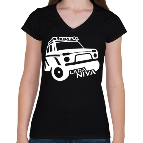 1 kép PRINTFASHION Lada Niva - Női V-nyakú póló - Fekete