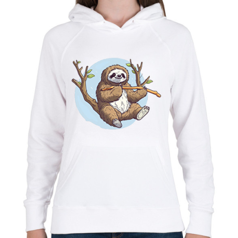 1 kép PRINTFASHION Lajhár a fán - Női kapucnis pulóver - Fehér