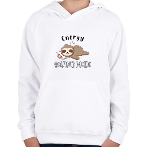 1 kép PRINTFASHION Lajhár Energy saving mode - Gyerek kapucnis pulóver - Fehér