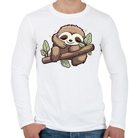 1 kép PRINTFASHION Lajhár - Férfi hosszú ujjú póló - Fehér