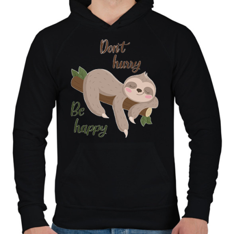 1 kép PRINTFASHION Lajhár - Férfi kapucnis pulóver - Fekete