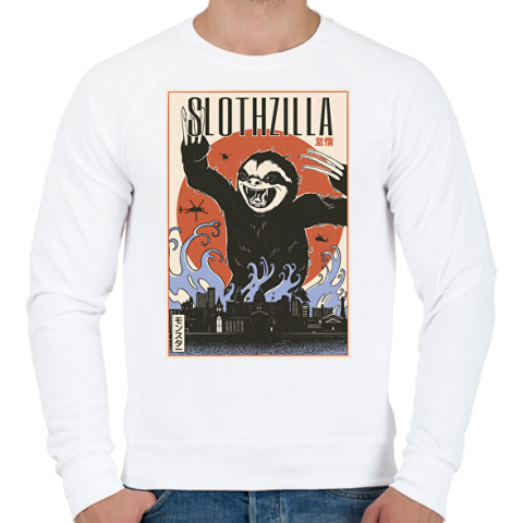 1 kép PRINTFASHION Lajhár godzilla - Férfi pulóver - Fehér