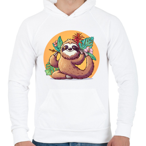 1 kép PRINTFASHION Lajhár jóga - Férfi kapucnis pulóver - Fehér