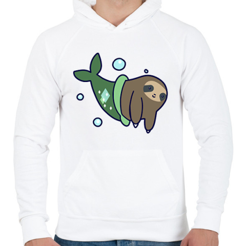 1 kép PRINTFASHION Lajhár sellő - Férfi kapucnis pulóver - Fehér
