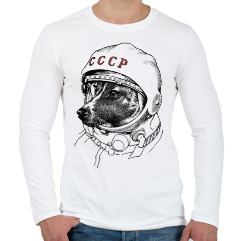 1 kép PRINTFASHION Lajka - Férfi hosszú ujjú póló - Fehér