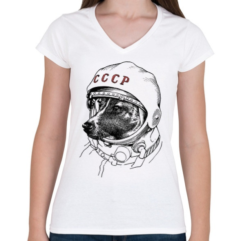 1 kép PRINTFASHION Lajka - Női V-nyakú póló - Fehér