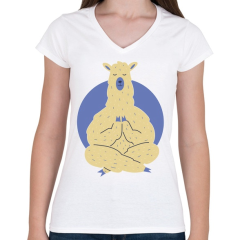 1 kép PRINTFASHION Láma GURU - Női V-nyakú póló - Fehér