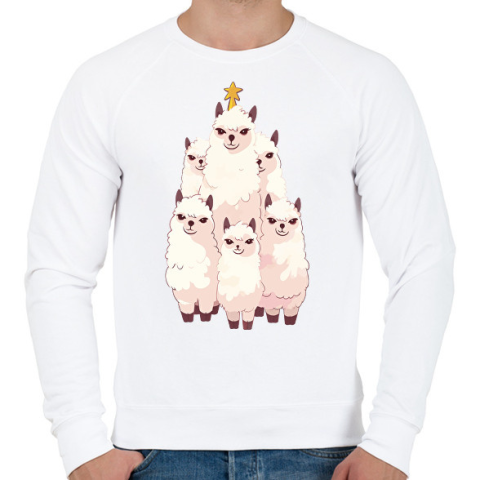 1 kép PRINTFASHION Láma karácsonyfa - Férfi pulóver - Fehér