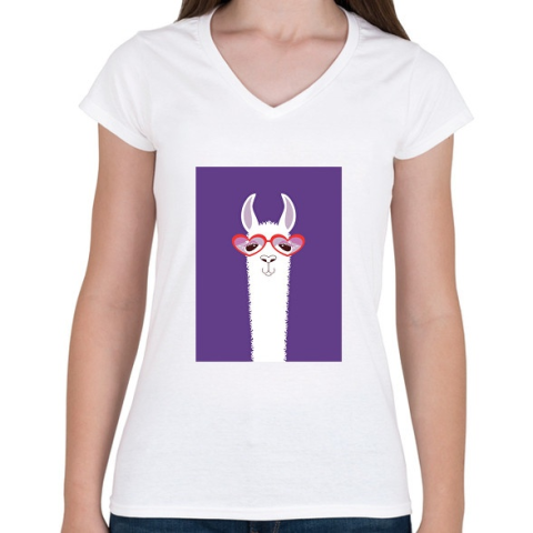 1 kép PRINTFASHION lamalogo - Női V-nyakú póló - Fehér