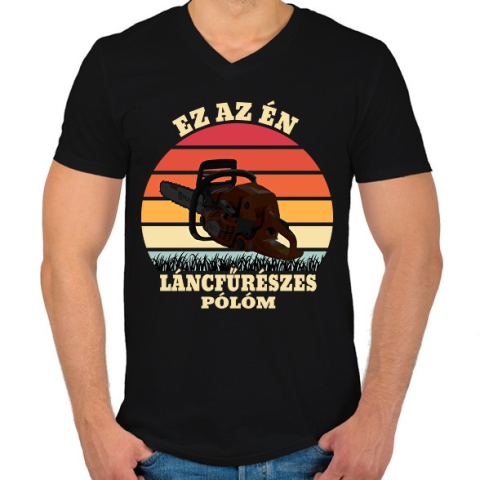 1 kép PRINTFASHION Láncfűrész / Favágó - Férfi V-nyakú póló - Fekete