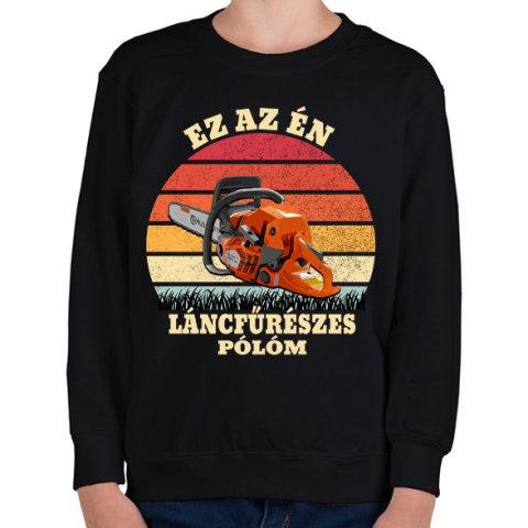 1 kép PRINTFASHION Láncfűrész / Favágó - Gyerek pulóver - Fekete