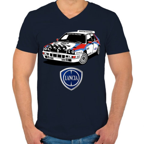 1 kép PRINTFASHION Lancia Delta - Férfi V-nyakú póló - Sötétkék
