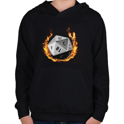 1 kép PRINTFASHION Lángoló D20 - Gyerek kapucnis pulóver - Fekete