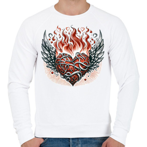 1 kép PRINTFASHION Lángoló Szív - Férfi pulóver - Fehér