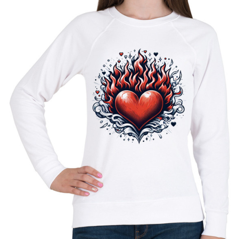 1 kép PRINTFASHION Lángoló Szív - Női pulóver - Fehér