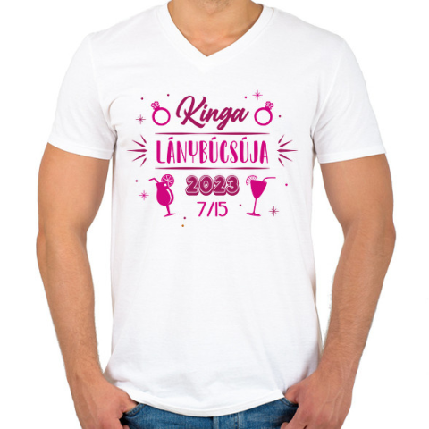 1 kép PRINTFASHION Lánnybúcsú - Névvel - Férfi V-nyakú póló - Fehér