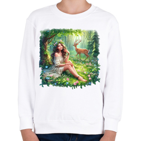 1 kép PRINTFASHION Lány az erdőben - Gyerek pulóver - Fehér