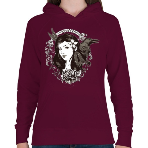 1 kép PRINTFASHION Lány és holló - Női kapucnis pulóver - Bordó