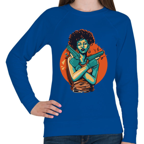 1 kép PRINTFASHION Lány pisztollyal Gangster girl - Női pulóver - Királykék