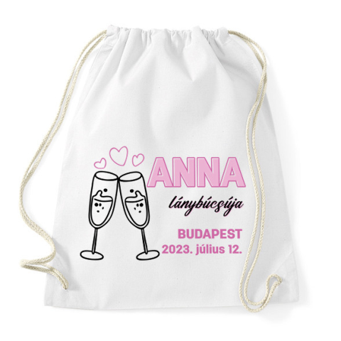 1 kép PRINTFASHION Lánybúcsú egyedi névvel - Sportzsák, Tornazsák - Fehér