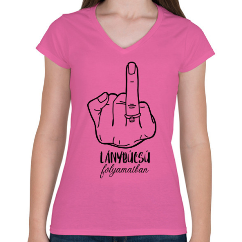 1 kép PRINTFASHION Lánybúcsú folyamatban - lánybúcsús póló a csapatnak - Női V-nyakú póló - Rózsaszín
