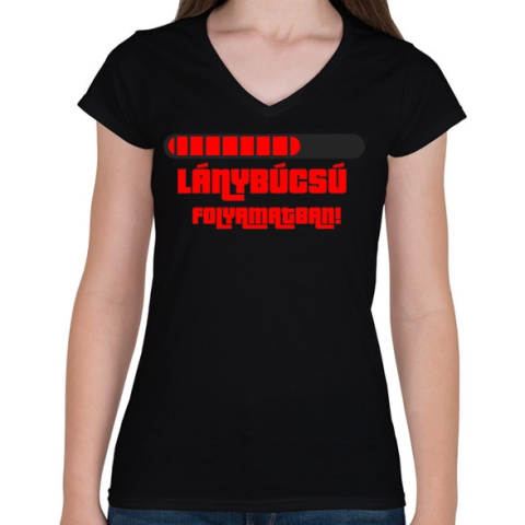 1 kép PRINTFASHION Lánybúcsú folyamatban - Női V-nyakú póló - Fekete