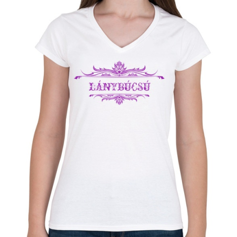 1 kép PRINTFASHION Lánybúcsú - Női V-nyakú póló - Fehér