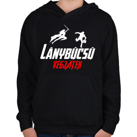 1 kép PRINTFASHION Lánybúcsú végjáték 2 - Gyerek kapucnis pulóver - Fekete