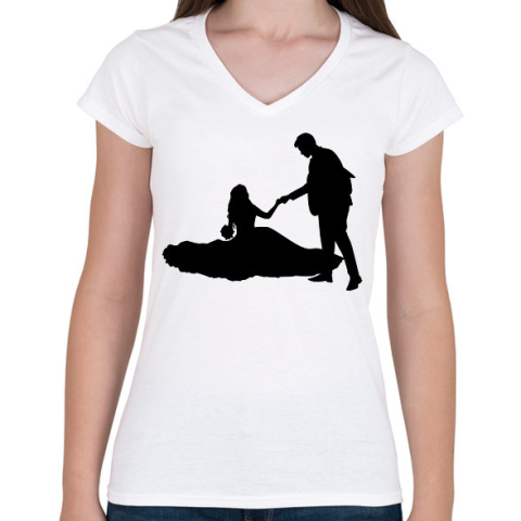 1 kép PRINTFASHION Lánykérés sziluett - Női V-nyakú póló - Fehér