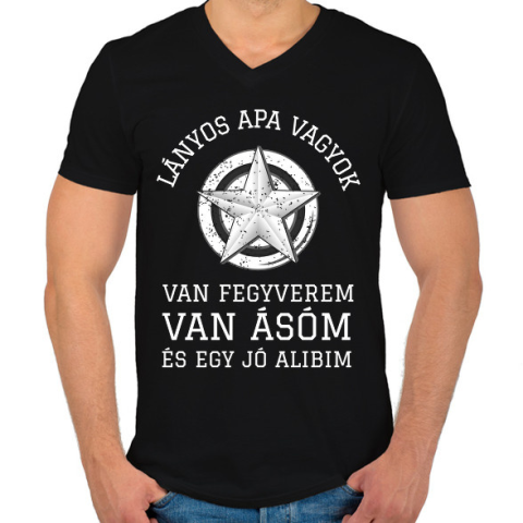 1 kép PRINTFASHION LÁNYOS APA 2 - Férfi V-nyakú póló - Fekete