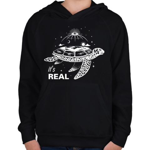 1 kép PRINTFASHION Lapos-föld hívő - Gyerek kapucnis pulóver - Fekete