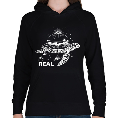 1 kép PRINTFASHION Lapos-föld hívő - Női kapucnis pulóver - Fekete