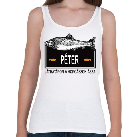 1 kép PRINTFASHION Lárhatáron a horgászok ásza - Névvel - Női atléta - Fehér