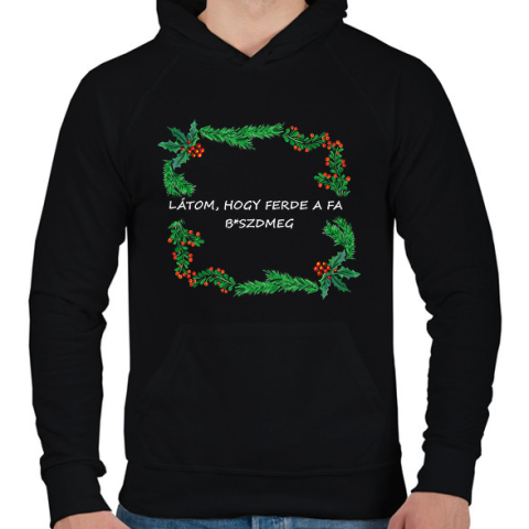 1 kép PRINTFASHION látom, hogy ferde a fa - Férfi kapucnis pulóver - Fekete
