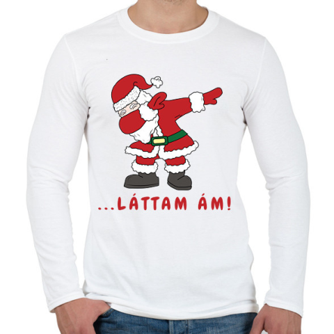 1 kép PRINTFASHION ... láttam ám! - Mikulás dabbing - Férfi hosszú ujjú póló - Fehér