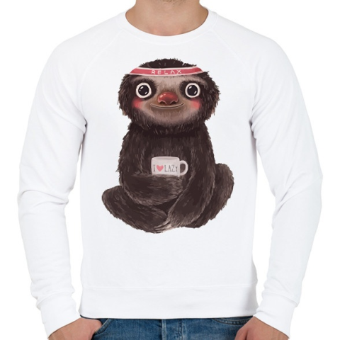 1 kép PRINTFASHION Lazy - Férfi pulóver - Fehér
