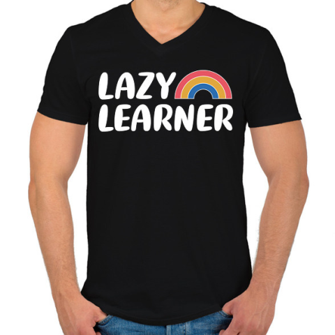 1 kép PRINTFASHION Lazy learner (White) - Férfi V-nyakú póló - Fekete