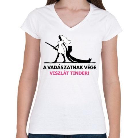 1 kép PRINTFASHION Leánybúcsú - A vadászatnak vége, viszlát tinder! - Női V-nyakú póló - Fehér