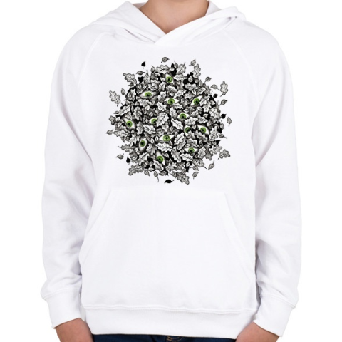 1 kép PRINTFASHION Leaves and green eyes - Gyerek kapucnis pulóver - Fehér