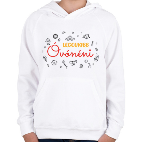 1 kép PRINTFASHION Legcukibb Óvónéni - Gyerek kapucnis pulóver - Fehér