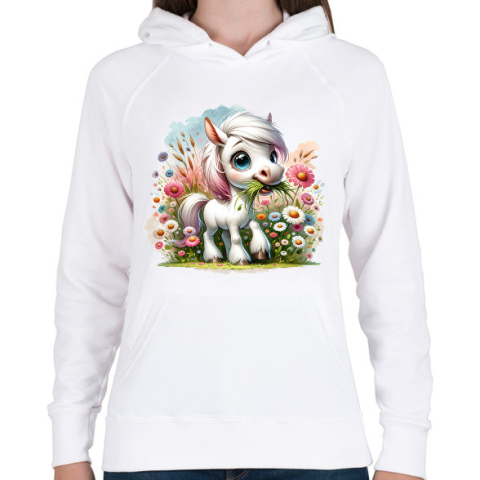 1 kép PRINTFASHION Legelésző fehér póni - Női kapucnis pulóver - Fehér
