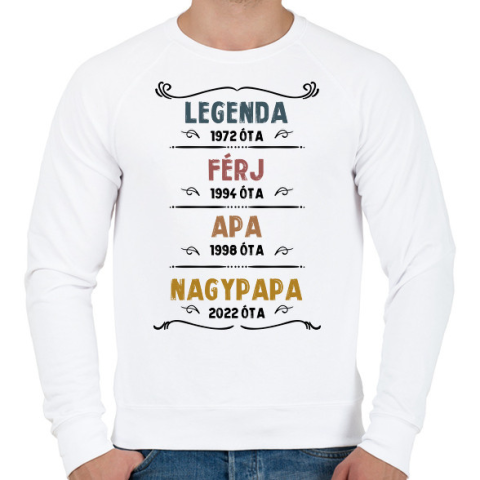 1 kép PRINTFASHION Legenda, férj, apa, nagypapa - Férfi pulóver - Fehér