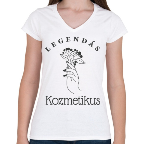 1 kép PRINTFASHION Legendás kozmetikus - Női V-nyakú póló - Fehér