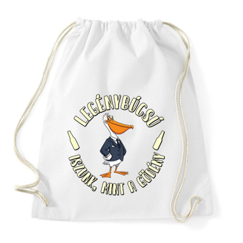 1 kép PRINTFASHION Legénybúcsú iszunk mint a gödény - Sportzsák, Tornazsák - Fehér