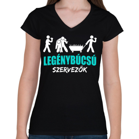 1 kép PRINTFASHION Legénybúcsú szervezők - Női V-nyakú póló - Fekete