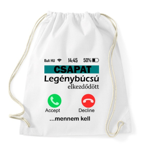 1 kép PRINTFASHION legénybúcsú telefonos csapat - Sportzsák, Tornazsák - Fehér
